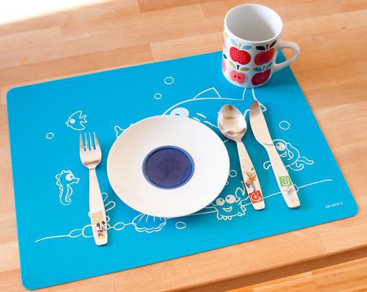 Silikon-Platzdeckchen für Kinder (Schule, Essen, Basteln) - Unterwasser blau Silikon-Tischset