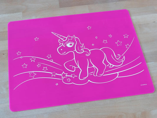 Silikon-Platzdeckchen für Kinder (Schule, Essen, Basteln) - Einhorn violett Tischset