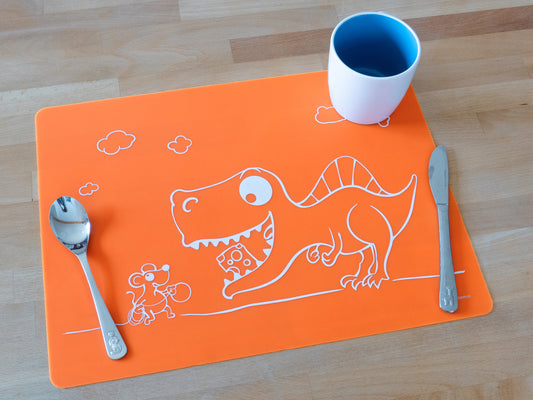 Silikon-Platzdeckchen für Kinder (Schule, Essen, Basteln) - Dino orange Silikon-Tischset